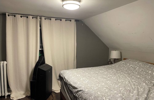 Hello! We are a Dentist and Veterinarian couple with a four bedroom, two bathroom upper level apartment (one other unit below) in a lovely brick house steps from Kingston General Hospital, Queen's, University, the Pier, Downtown! We are moving to TO for work and will have a vacant unit available from December 1 st - April 30th, 2025. (We could consider someone sooner if they do not mind shared accommodation.) Wood floors, no carpet. Portable A/C. Private bathroom, shared kitchen (though not furnished). Recent private balcony space.