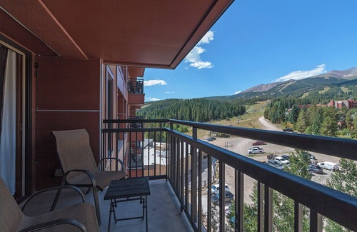 6th floor Ski in/out 2 bed 2 bath unit with mountain views located at the base of Peak 9 a block from Main Street. Relax after skiing or hiking in our new hot tubs, heated indoor/outdoor pool, sauna & steam room! Enjoy spectacular views, breathtaking sunset over the Ten Mile Range from our two balconies or a cozy night in with the wood burning fire. Paid underground parking available or forget the car and take the shuttle as everything is within a few blocks!