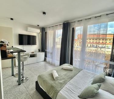 Just a 14-minute walk from Saint-Ferreol Street and one mile from Joliette Metro Station, Studio devant la gare Saint-Charles features accommodations in Marseille with a terrace. With city views, this accommodation features a balcony. Plage des Catalans is 1.8 miles from the apartment and Les Terrasses du Port Shopping Center is 1.1 miles away. With free Wifi, this 1-bedroom apartment provides a flat-screen TV and a kitchenette with a microwave and fridge. The air-conditioned unit at the property features a bath or shower and a dressing room. The property has an outdoor dining area. There is an on-site coffee shop. Popular points of interest near the apartment include Vieux Port Metro Station, Marseille Saint-Charles Train Station, and Castellane Metro Station. Marseille Provence Airport is 14 miles away.