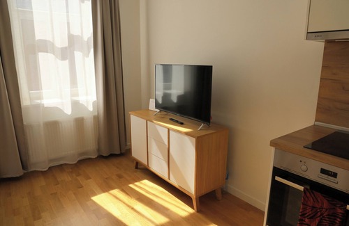 A studio apartment for one or two people. It is located in the center of Riga: 5min walk from the old town and 10min walk from the central bus and train station. The neighbourhood is vibrant, packed with shops, restaurants and museums.