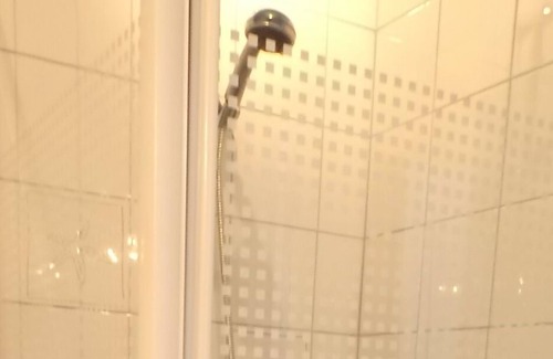 Bathroom with shower cubicle, sink, WC, electric towel dryer)