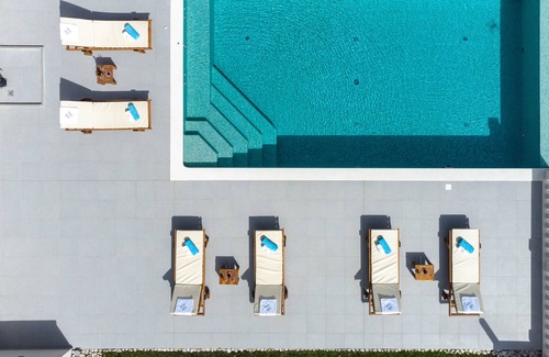 A secluded villa with private infinity-type swimming pool that comfortably sleeps up to 8 guests. It is made of local stone, marble and the best quality of building material, in a hilly background that protects from the winds. The house offers complete privacy and staying here will be a unique experience. Staying here will be a unique experience. The house offers complete privacy. It consists of a main and guest house. The main house is air-conditioned, has two double bedrooms that comes with an en suite bathroom with shower. The rest of the main house consists of a spacious living room with dining area and a fully equipped open-plan kitchen. Guest house consist of living room and bathroom. Entire property sits on a 500 sq. m. plot. There is a superb 39 square meter "infinity" type swimming pool with depth of 150cm featuring Jacuzzi and great view.