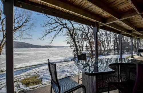 This house has a fully stocked kitchen, a Keurig coffee maker, a blender, and a toaster. Although the cabin is very secluded, near the end of a dead-end road, it has fast enough wifi for the kids to stay connected and for the adults to get some extra work done if need be. There are also 2 smart TVs with Roku, BYOL (bring your own logins), and top-of-the-line Bluetooth Sonos speakers on the main floor and in the basement. There are 2 full bathrooms that each include a shower. 2 bedrooms on the main floor, the first has 2 twin beds, and the second has 3 twin beds. Great for the kids! And there is a loft bedroom with a king bed and a basement bedroom with a queen bed and an office space. Enjoy unmatched views of Lake Wisconsin from the deck and the patio below it, each filled with comfortable outdoor furniture. You also will have access to a kayak, a canoe, and a stand up paddle board as well as some floatation devices. Please note that we are not liable for any injury caused from use of any of this equipment.