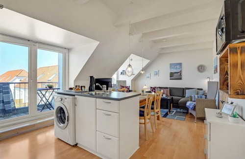 Enjoy a pleasant stay with your loved ones in this beautiful vacation apartment on the northwest coast of Jutland. The apartment is cleverly and comfortably furnished and you will quickly feel at home here. Drink your morning coffee on the balcony while enjoying the view of the water or watch the fascinating sunsets over the sea in the evening with a cool drink.
