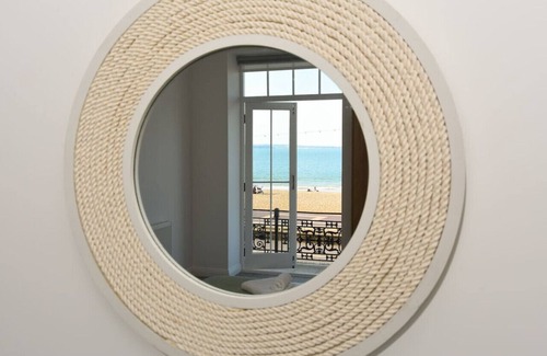 Located on the first floor of a classic Victorian building designed by Thomas Ellis Owen, this beach front apartment has an open plan kitchen/living/dining room which is perfect for couples and families alike. There are two double bedrooms each with storage and the master has it`s own ensuite. There is also a double sofa bed in the living room. The kitchen is fully equipped with dishwasher, washer/dryer and a large fridge freezer. The highlight of this property is the private balcony which overlooks the seafront and South Parade Pier. You can watch the ships coming into and out of the busy harbour and on a clear day see all the way across to the Isle of Wight. Please note that this balcony has low railings and children must be supervised at all times.