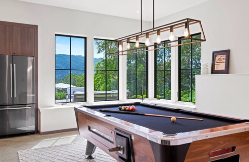 Downstairs you will find a Peloton bike, game room and sitting area that leads out to the pool, outdoor kitchen and dining area. Off of the game room is a repurposed recording studio with a queen bed which can be utilized as another sleeping area.