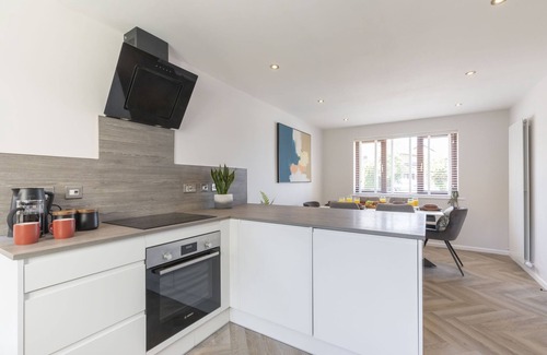 With its own private entrance, our spacious home is spread over two floors and has off-road parking for up to 3 cars. On the ground floor, you'll find a comfy lounge with seating for 7, a 65" flat-screen TV, and patio doors leading out to a fully enclosed private rear garden. The open-plan kitchen diner is perfect for entertaining and comes fully equipped for all your basic cooking needs. The dining area seats 8, and the kitchen features an under-counter fridge and freezer, a washing machine, dishwasher, electric oven, and induction hob. You'll also find a kettle, toaster, microwave, and a Nespresso coffee maker with complimentary pods provided. There is also a side door that leads out to the rear garden.