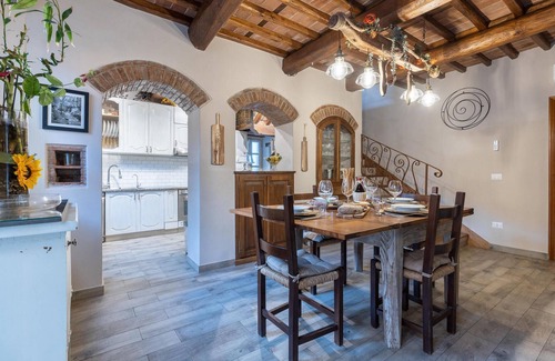 The house welcomes you in a good location to enjoy the benefits of Tuscany on vacation. Here you can relax to your heart's content in historic walls, heavy wooden ceilings, dignified furniture and beautiful wooden floors make up the quaint charm of the vacation home. After a game of billiards, make yourself comfortable together by the fireplace and enjoy the cozy atmosphere.