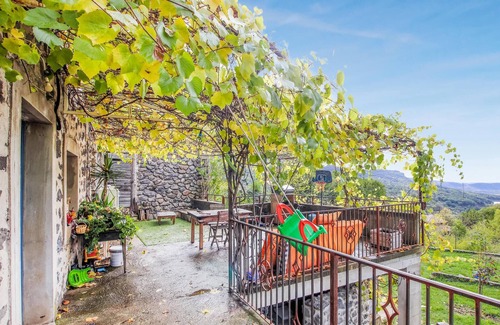 Enjoy a wonderful view of the countryside from this traditional vacation home with its charming, sheltered pool.