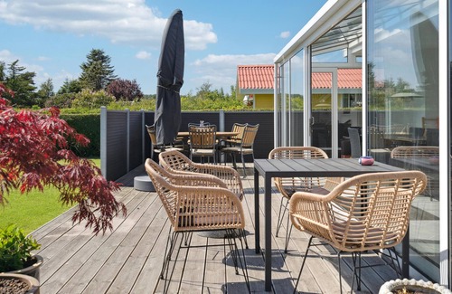 In the north of the island of Funen, just 150 meters from the sandy beach, this inviting vacation home welcomes you. The bright and well-equipped interior makes a homely impression and provides a good setting for a comfortable vacation. Spend cozy days in the spacious living room and gather in the evenings around the dining table in the kitchen or in the winter garden while looking at the greenery.