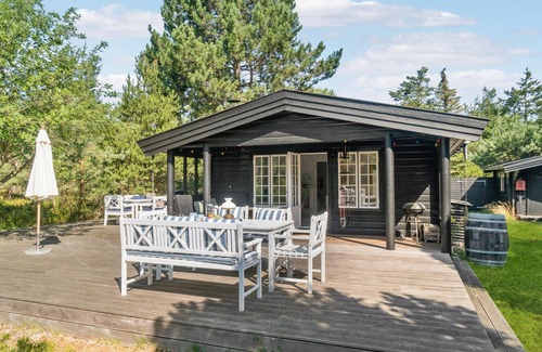 If you are looking for peace and privacy, you will find it in this cosy holiday home on a wooded natural plot! Inside, you will be greeted by brightly coloured accommodation that exudes an inviting feel-good atmosphere. Cosy up together on the sofa, light the fireplace on chilly evenings or play a board game at the dining table. You can sunbathe on the large wooden terrace or enjoy your barbecued meals and make plans for the days ahead.