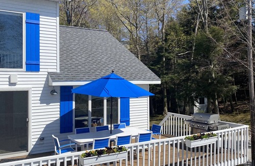 The home is in a quiet area that you enter through a well maintained wooded drive from the east. There is only one neighbor to the south, a large grass/wooded dune is to the north, and beautiful Lake Michigan to the west. The outside area is equipped to enjoy Lake Michigan. There is a fire pit on the back-side (wooded side) of property with Adirondack chairs. There is a good size deck on the front side of the cottage with Weber Genesis II three burner gas grill and outside eating space. There is also a bluff deck that is a few steps from the house that sits on the precipice of the dune with seating and panoramic views of Lake Michigan. Finally, the beach offers 110 ft of private frontage. Getting to the beach takes about 100 steps down the stairs to the waterfront, so make sure to take some water, soda, or an adult beverage with you. Beach chairs and toys are stored in unit at the waterfront.
