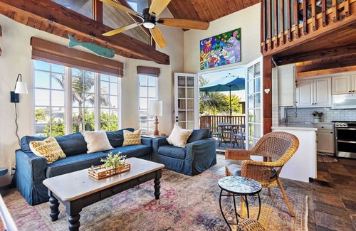 Just a 30-second walk to the beach, this three-story, architect-designed home offers space, comfort, and location in one of San Diego’s most beloved beach communities on one of the loveliest courts in Mission Beach. With beds for 10, it’s perfect for families or groups traveling together. There are places to socialize or relax on all three levels, starting with the enclosed front patio with ocean views. Two full size parking spots are a rare find! Book now!