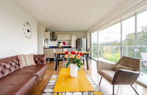 Located in front of Club de Los Lagartos Golf Course, less than 7 miles from the El Dorado International Airport and less than a mile from Av Boyaca, this modern apartment provides the convenience of being within the city with a relaxing and quiet environment, excellent to rest from the crowded city.