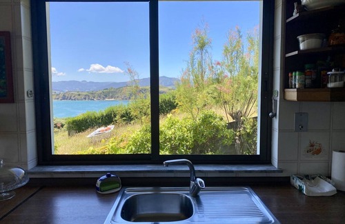 When it comes to location, it doesn't get any better than this. Perched on a bluff, overlooking the beaches and ocean, this lovely home is the best place to come to disconnect from everything. It is literally a 1 min walk to several stunning beaches. Although one bedroom appears with only 1 single bed, a second single can be put in that bedroom to accommodate a total of 6 guests. The house is bathed in sun all day long and the property is completely walled off and has a huge, very private, garden all around. There is a lovely porch covered with grape vines with a BBQ area. The house is equipped with washer and dryer and also has WIFI. Needless to say the views are absolutely stunning and the sound of the waves lapping on the shore on the beach below are delightful.