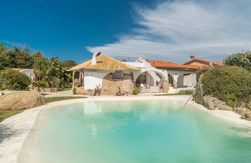Cosy and comfortable villa "La Dolce Vita" in the district of Santa Reparata, 4 km from the center of Santa Teresa di Gallura, and 1.2 km from the sea. Enjoy the private property of 1'000 m2 (fenced), boasting a garden with lawn and wildlife garden, a swimming pool (4 x 3 m, depth 20 - 160 cm, seasonal availability: 01.Apr. - 31.Oct.), and amenities like an outdoor shower, hot tub, pool house with fridge and cooking stove, and a barbecue. This vacation rental also features a roof terrace within the house.