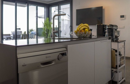 Polop Hills is situated 10 km from the vibrant city of Benidorm and its renowned sandy beach. Nearby attractions include Aqualandia (12 km), Mundomar (12 km), Terra Mitica (12 km), and Terra Natura (5 km). Alicante and its airport are located 51 km and 64 km away, respectively. For your convenience, a supermarket is just 1 km away, while restaurants and bars are within a 3 km radius. The nearest railway station, "l'Alfàs del Pi," is 7 km from the property.
