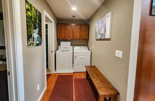 Perfect for a ski getaway with friends or a much-needed break from the hustle and bustle of normal life, this beautiful lodge is ready for your next adventure! With vaulted ceilings that let in plenty of natural light, rustic decor, and an open layout, entertaining larger groups and spreading out will be a breeze. Head out to the front porch or back deck each morning to breathe in that crisp air with a fresh cup of coffee. Don't worry about cold floors in the morning - both bathrooms and the entryway are warmed by electrical floor heat. After a full day of shredding fresh powder up north or hiking nearby, there will be no better way to settle down and soothe tired muscles than a session in the classic cedar barrel sauna (powered by wood) right outside the front door! Plus, the chef of the group can easily whip up a tasty meal for the whole group on all of the appliances of home in the full kitchen. Come summer, the private gas grill will come in handy for family cookouts as the sun dips behind the trees. The baker of the group will enjoy the use of cookie sheets, mixing bowls, a hand mixer, and other bakeware.