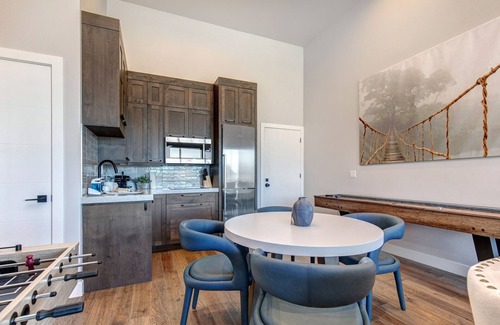 This spacious 4-bedroom, 3-bathroom home sleeps up to 11 guests, ideal for families or groups. Two private balconies with a BBQ and hot tub let you soak in the sunset over the mountains or enjoy a relaxing evening outdoors. The interior features a fully stocked modern kitchen, 2 cozy living areas with Smart TVs and DirectTV, and a game room with shuffleboard, foosball, board games, and toys for little ones. Ski boot dryers make hitting the slopes hassle-free, while the basic gym (dumbbells + bench) keeps you active year-round.