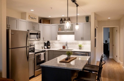 Experience the perfect blend of luxury and convenience with the fireplace (two safety firelog provided for your stay), along with complimentary shampoo, conditioner, body wash, coffee, tea, sugar, and basic cooking spices and oil.