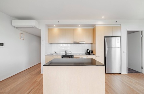 Stay in this bright and spacious 1-bedroom apartment in the heart of Canberra City. Enjoy a private balcony, underground parking, and a fully equipped kitchen. This apartment is ideal for solo travellers or couples, featuring blackout blinds, free Wi-Fi, and access to a pool, gym, and sauna. Conveniently located near local attractions and shops, it offers the perfect blend of comfort and city living.