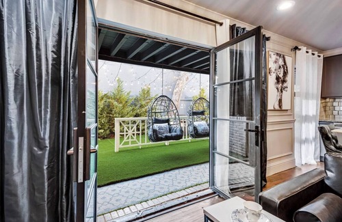 Experience refined living in a beautifully appointed one-bedroom residence on historic Swiss Avenue. This elegant retreat features a plush King bed with premium linens, high-speed Wi-Fi, and a stylish living area with a 65″ smart TV for relaxing evenings. A fully equipped modern kitchen makes in-home dining effortless, while large windows fill the space with natural light and offer peaceful views of the gated courtyard. Set in the heart of Dallas, you’re moments from top dining, boutique shopping, vibrant arts venues, and cultural attractions.