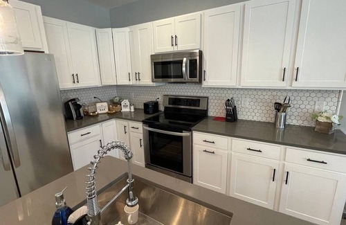 Experience modern comfort in this 2BR apartment within a gated community. Features include a fully equipped kitchen, high-speed Wi-Fi, and a 65” Smart TV. Both bedrooms offer queen-size beds with premium linens. The master bedroom boasts a private balcony. Pet-friendly with prior approval. Conveniently located near downtown Greenville's attractions. Ideal for families, business travelers, or remote workers.