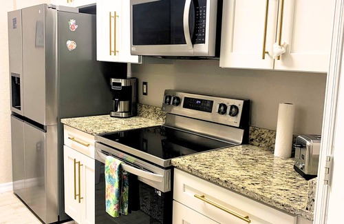 This beautifully designed 3-bedroom, 2-bathroom first-floor apartment is located in a peaceful, gated community with walking trails and a resort-style pool. Whether you're visiting for business, family fun, or a romantic getaway, this space offers the perfect mix of comfort, convenience, and Florida charm.