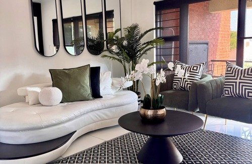 This beautiful furnished 2 bedroom Apartment is situated 5 minutes away from Monte Casino and Design and Fourways mall. Self catering kitchen fitted with state of the art appliances. Uncapped wi-fi and access to Netflix, Showmax, YouTube and other exciting Apps. Enjoy a stylish experience at this centrally located place. The unit is in a secure complex with 24 hour security, it is ideal for business or family stays. Kick back and relax in this calm, stylish space.