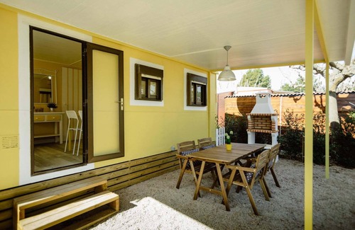 Charming Coastal Chalet Escape Unwind in this beautifully furnished chalet nestled within the serene surroundings of Camping Miramar, just 3.5 km from the golden beaches of Miami Platja. Thoughtfully designed for up to 4 guests, this cozy retreat features two inviting bedrooms, a comfortable living area with air conditioning, and a fully equipped open kitchen. Enjoy relaxed evenings on your covered patio, complete with garden furniture and a barbecue—perfect for outdoor dining under the stars. Inspiring Location Full of Discovery Located in Mont-roig del Camp, a village that once inspired Catalan artist Joan Miró, this spot is rich in culture and natural beauty. Explore nearby treasures like the ancient Roman city of Tarragona, the modernist flair of Reus, or the buzz of Barcelona. Families and thrill-seekers will love the proximity to PortAventura World, while couples can meander through Cambrils’ charming harbor or stroll peaceful Mediterranean shores. Dining and Local Delights Savor delicious Catalan cuisine at local restaurants just a short drive away. Whether you crave fresh seafood, wood-fired tapas, or traditional paella, nearby eateries offer a feast of flavors to enhance your stay. With on-site parking and all the comforts of home, this chalet makes your Costa Dorada adventure as effortless as it is unforgettable.