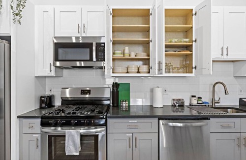 Experience NYC in style from our luxury 1BR unit with airy 11ft ceilings, just minutes from Newark (EWR) and NYC airports (LGA, JFK). The Light Rail and grocery shopping are only 5 minutes away. Unwind in a memory foam queen bed, a cozy sofa bed, and spacious closets for all your essentials. Stay connected with high-speed Wi-Fi and a 55" Smart TV. Enjoy premium toiletries, a fully equipped kitchen, and even an in-unit washer/dryer—everything you need for a relaxing stay.
