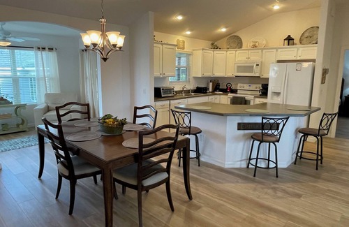 Stylish Home with Golf Cart, Lanai & Prime Location Near Town Squares! has 3 Bedrooms , 2 Bathrooms, and max occupancy of 6 people. The minimum rental for this property is 1 nights, but this can change depending on the season you plan on staying. Previous guests have given good rated it, and VRBO labeled it a top-rated House because of the excellent services rendered by the owner or manager of this House, and has consistently provided great experiences for their guests. Most families or guests that use it recommend it to their friends and some of them are repeat guests. House has a friendly neighborhood, and the Fruitland Park has interesting places to visit. If you want to learn more about the House in Fruitland Park, such as places to visit and things to do nearby, you can check below to learn more.