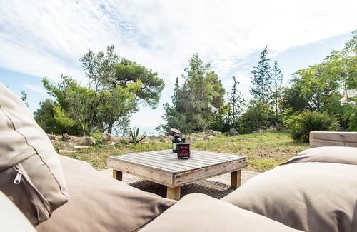 The house consists of 1 twin bedroom, one single bedroom, one bedroom with either 2 single beds or 1 double, one large twin sofa bed, a fully equipped kitchen, 1 bathroom with shower, 1 WC, living room with 55' smart tv, high speed internet and dining table. The house is in a big garden tree area of 4 acres with an amazing sea view and also includes an outside shower cabin with hot/cold water as well as external dining table and bbq.