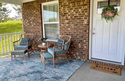 You have the entire home to yourself. Three large bedrooms, master en suite, full bath for additional guests. Spacious and fully stocked kitchen and cozy living space with electric fireplace. Laundry room for your convenience. Electric grill on the back patio and a covered front porch for relaxing evenings.