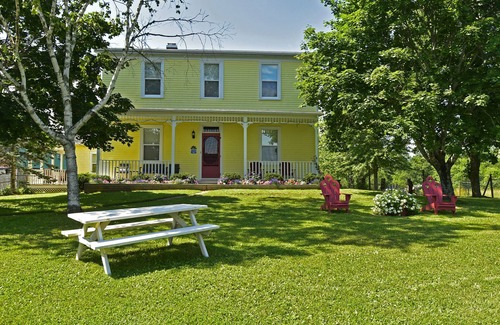 You can simply relax and enjoy soothing views of the pasture from every room at our airy retreat, or fill your day with indoor and outdoor activities, between the indoor lounge, covered porch, picnic tables and dock on the river 200 feet away – the perfect spot to launch your kayak, about 1km upriver from Mahone Bay.