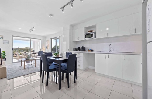 Each bedroom is bright and comfortable, with mirrored wardrobes and quality bedding, while two modern bathrooms provide added privacy — perfect for families, friends, or colleagues sharing the space. Reverse-cycle air conditioning keeps the apartment comfortable year-round, and a hidden laundry with washer and dryer adds extra convenience for longer stays.