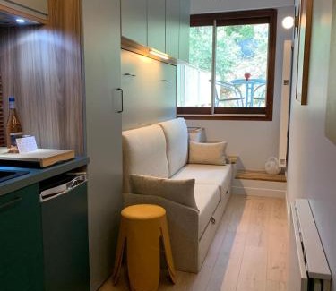 BathroomTowels, Shower, Toilet paper, Bathtub or shower, Conditioner, Shampoo, Shared toilet, Hairdryer, Private bathroomGeneralTrash cans, Ironing facilities, Smoke Alarm, Heating, Hardwood or parquet floors, IronKitchenRefrigerator, Dining table, Cleaning products, Stovetop, Wine glasses, Kitchenette, Toaster, Kitchenware, Coffee machine, Electric kettleLiving AreaSitting area, Sofa, Dining areaBedroomWalk-in closet, Linens, Wardrobe or closetViewLandmark view, View, Garden view, Sea viewOutdoorsOutdoor dining area, TerraceBuilding CharacteristicsPrivate apartment in buildingRoom AmenitiesSocket near the bed, Sofa bed, Non-feather pillow |