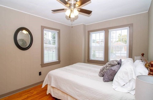 Charming 2nd floor, 2 bedroom, 1 bath suite located at 3rd and Schiller in the heart of downtown Hermann. Easily walk anywhere you need to go or get picked up right at the front door by the Hermann Trolley. Walking distance to Amtrak as well. 2 Queen beds as well as a sleeper sofa available. All linens provided as well as coffee bar and full kitchen with utensils, post, pans, etc. This is a new listing. Please click on my profile to see reviews on my other Hermann properties. Message me for info on how to book more than one suite (we have 4 total). Roku TV for you to login to your favorite streaming service (no cable)