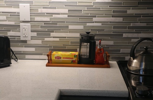 This is a newly built house with guests in mind. We have tried to consider all of your needs in outfitting the kitchen, bedroom and bath. We have USB ports for your gadgets, wifi for your convenience, and heat and air conditioning for your comfort. The two-story house has one set of stairs that will take you from the welcoming entryway into the upstairs living space, where you will find a fully equipped master bedroom and an easily converted couch for up to three guests to enjoy. The kitchen has full-size appliances and is outfitted for a microwaved meal for one or for a gourmet feast with ingredients bought from the nearby Liberty Market.