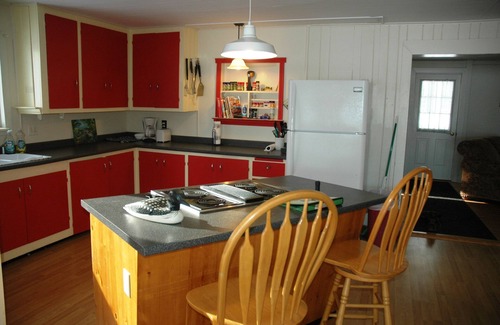 In addition to the three bedrooms, the house also has two single beds in separate rooms - ideal for the kids or someone who snores. We are pet friendly with pre-approval but do charge a $200 pet fee and expect no trace left behind - inside and out. The location is 20 minutes from the state capital of Augusta, on the Winthrop-Monmouth town lines. The first floor features a full kitchen, living room with basic cable TV and open dining area with a cathedral ceiling where you can enjoy your morning coffee and watch the sun rise over the lake or sip an evening glass of wine and look at the moon over 'Big Island'. Two bedrooms on the first floor - both with queen beds, and a single bed in the laundry room.