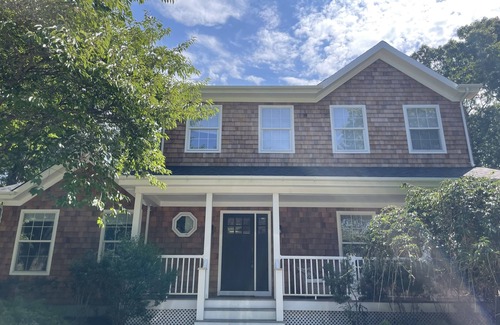 Summer rental in Westhampton. Four bedrooms, four newly renovated bathrooms. New central AC. WiFi throughout the house. Newly renovated front porch. New washer and dryer. Outdoor shower. Heated pool with pool toys. Poolside lounge chairs and outdoor seating area on deck with large dining table and BBQ gas grill. Beautiful large grass lawn with volleyball net, soccer goals, trampoline, bocce. Backyard is completely fenced in so good for dogs and young kids. Kitchen with island. Separate dining room. Two living rooms, one with fireplace. Large finished basement. Either Thursday, Friday or Monday check in preferred.