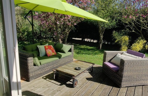The wooden summer house (50m2) is located in a quiet recreation park 'Zonneweelde' on the coast of Noordwijk, just behind the dunes and the beach. Not only is the bungalow suitable to stay in the summer, but also in the spring and autumn. From the park you can walk to the sea within 15 minutes via a walking, cycling path through the dunes. The bungalow is ideal for couples, and families of up to four people. You have private parking and can enter the bungalow from two sides. The garden is all around, offers privacy with two terraces. Throughout the day there are places to lie in the sun but also to find the shade.