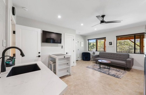 Welcome to Serenity Lodge, where family fun and relaxation await! Upstairs, two cozy bedrooms, three full bathrooms, large fully stocked kitchen with a view and two inviting living rooms for quality time together. Downstairs, a private suite with its own kitchen and plush king bed. Gather on the spacious outdoor deck for BBQs. Garage covered parking convenience with ping pong table. Only 3 miles from historic downtown Whisky Row in Prescott, AZ. Book today or add to your favorites lists!