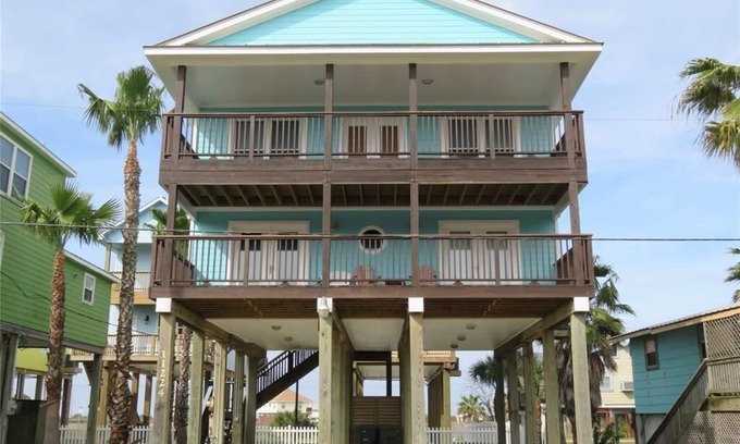 HOME CAN BE RENTED TOGETHER WITH BEACH HOUSE ACROSS THE STREET FOR LARGE FAMILY GATHERINGS: vrbo # 645288 (Same Owner) Wake up to the ocean breeze in this 3 bedroom, 3 bath beautiful and spacious beach house two minutes walking distance from a private beach all to your self in Sunny Beach! The house features a huge living room for guests to unwind after a fun day at the beach and large ocean view decks to enjoy your morning coffee while watching the sunrise in the morning and an adult beverage in the evening while watching the sunset :). This beautiful home is the perfect size and layout for a large family or group of friends traveling together. The home has everything you need for a perfect full week or weekend getaway from the city. Bonita Rita is located in the closest west end, beach side subdivision in Galveston. From the moment you arrive, you’ll immediately fall in love and be welcomed by a soothing ocean breeze, the calming sound of dancing waves, the bright and open interior featuring cozy furnishings, lovely decor, and large windows that flood the home with an abundance of glorious natural light. All the conveniences of home are provided as well including air conditioning, in-unit washer and dryer, updated furniture and appliances, and high-speed wireless internet access for your convenience. After making beautiful memories all day at the beach, rinse off in the outdoor shower and retreat inside to the comfortable living room, where you can unwind while watching TV on a 50' HDMI flat screen. Once you've worked up an appetite, you'll find the home's modern kitchen fully equipped with everything you need to prepare delicious meals or simply go downstairs and BBQ while listening to the ocean waves. The balconies will serve as the ideal place to spend nice evenings admiring the ocean views with all of your family and friends. When you’re ready to call it a night, retreat to one of the inviting bedrooms to rest up for the next memorable day and look forward to arising from the Master and 2nd bedroom suites through the double french doors to enjoy Galveston's beautiful sunrises from your deck. You will not want to leave Bonita Rita!