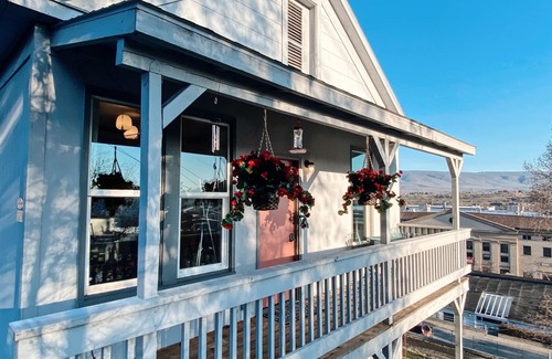 -Our apartment is cozy yet bright with tall ceilings and windows and beautiful views of Downtown The Dalles and the Columbia River Gorge. There are two rooms, one bedroom and one office with a desk, chair, and sofa.