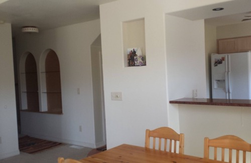 Beautifully maintained townhome in Solar Ranch - walk or bike to restaurants, market, or trails. Our home has plenty of off street parking; a front gated patio; a private, fenced backyard that looks out to open space; and landscaped grounds all around. The trail to the open space and town is adjacent to our building. A couple minutes drive off highway 62 or highway 550. Kitchen with granite countertops and a pass through bar to dining area. A vaulted living room with gas fireplace and large flat screen TV with views of Mt. Abram and the Uncompahgre valley to the south, foothills of the Sneffel Range to southwest, and the Cimarrons to the east. Washer and Dryer off the kitchen as well as a utility sink. Main floor bedroom suite has a full bath with a walk in tub and twin bunkbeds. The main floor bedroom has a south facing window. Upstairs is a large master suite loft with a full bath and Jacuzzi tub and a king size bed. The single car garage seen in the pictures is not accessible to guests.