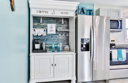 Located in a prime location, within easy walking distance from beaches, shops, and local restaurants, this cool and contemporary vacation rental is ready for your next getaway to St. Augustine. The entire upper level of this home is a gem and only one block away from the private beach walking towards the beach on Palencia St, so you will have no delay in getting your fill of sandy toes and crashing waves. Inside this delightful home, you'll find a modern, well-equipped kitchen with loads of countertop prep space, stainless steel appliances, a breakfast bar, and a coffee bar. Dine together or play some board games at the adjacent dining table for eight, and then relax in the living area while you stream your favorite shows or movies on the smart flatscreen TV (don't forget your account info for your favorite streaming services). Outside, you'll find a furnished deck, a gas grill, shared pool, and plenty of poolside seating for lazy afternoons.