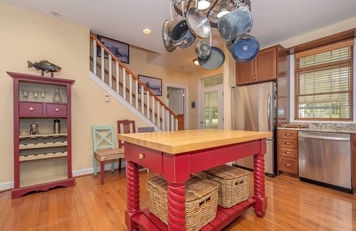 Upstairs, the loft is a great place to catch up on a good book or to break out the board games. There are two well-appointed bedrooms where you can rest up after a fun-filled day at Deep Creek.