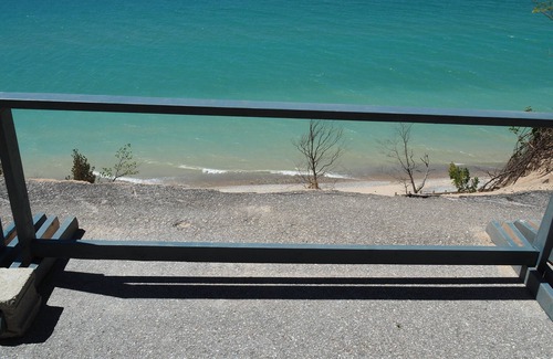 8) BLUFF: The home is on top of a very fragile sand bluff overlooking Lake Michigan. There are huge bags of sand at the base of the bluff to prevent future erosion. Guests are not permitted to climb the sand dune for both their safety and the safety of the bluff. (The private beach can be accessed via the neighbor's stairs, which are shared with guests.) Similarly, the driveway portion that is directly between the house and the bluff is blocked off and cars are not permitted on this part of the driveway. This is again for both the safety of guests as well as the safety of the bluff since the top of the driveway is fragile and may give way.