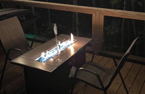 Outdoor Oasis: Step outside and indulge in your own private hot tub. Enjoy outdoor cooking with the provided grill and gather around the warm glow of the gas fire pit table.